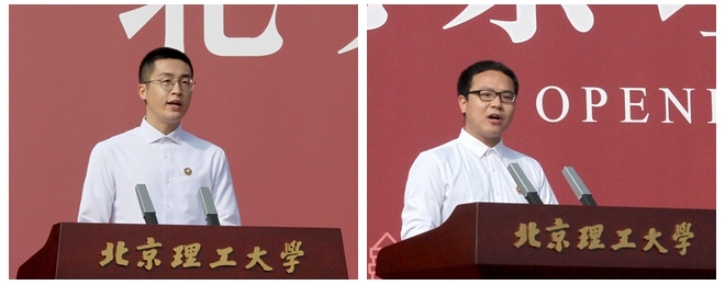 宇航學院2020級博士生吳則良代表全體研究生新生發言,他表示將不忘初心,以創新為己任,勇攀學業高峰,胸懷天下,把自身小我融入祖國大我,讓個人奮斗與國家需求、學校發展同頻共振,以不懈努力踐行新時代青年的使命。光電學院2017級博士生邵龍代表在校生發言,他分享了自己在北理工求學奮斗的創新創業故事,展現了北理工學子的情懷、擔當和堅持,鼓勵同學們要珍惜當下,仰望學術星空,踏實求索篤行。