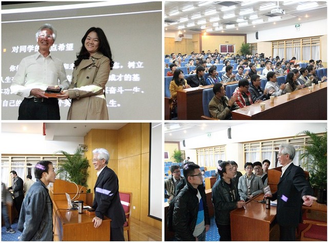 2013年10月28日晚,以“用智慧和汗水書寫美好人生”為主題的院士報告會在我校中關村校區舉行。作為“信仰•青春•陽光”主題教育活動的重要環節,在校團委、機械與車輛學院共同組織下,被稱為“中國館之父”的中國工程院院士何鏡堂來到我校與學生面對面。校黨委副書記、副校長李和章,校團委副書記方蕾,機械與車輛學院黨委副書記、副院長范文輝等領導老師參與了此次活動。