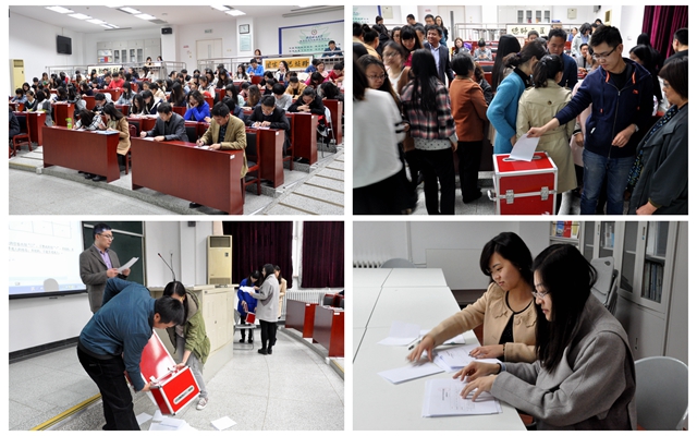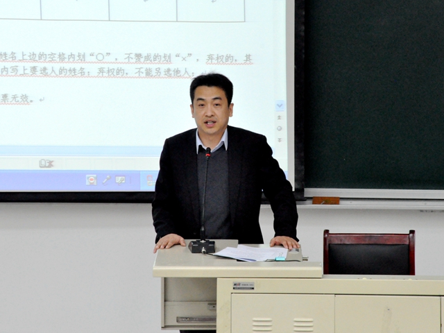在計票統計環節,法學院黨委書記楊海向與會全體黨員同志介紹了學院綜合改革的情況以及學院黨委2015年整體黨建工作計劃,希望大家能夠積極廣泛的參與其中,為學院的發展獻計獻策。